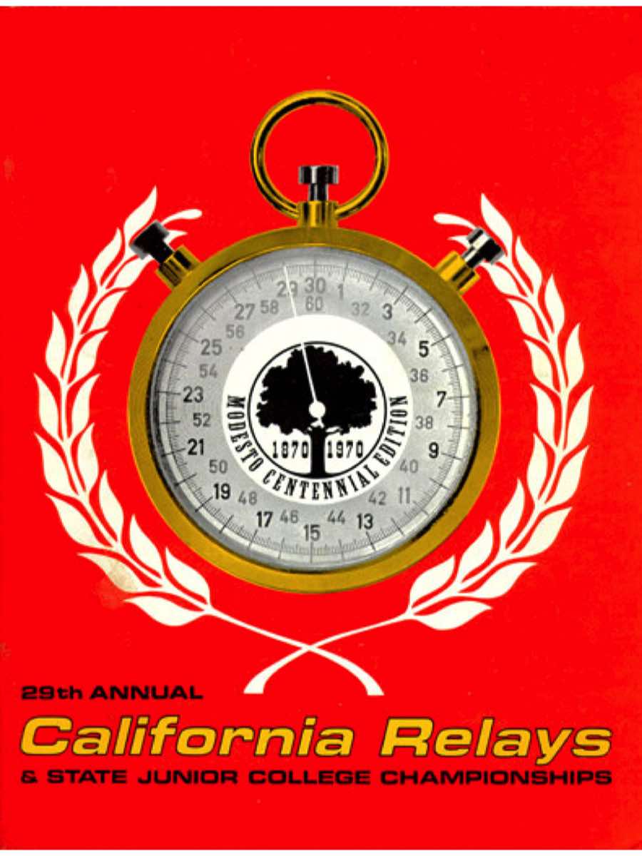 The California Relays The year after the United States entered World War II, the Modesto Junior Chamber of Commerce, with the assistance of Modesto High School and Modesto Junior College, launched the first of what would be 67 years of premier track and field competitions. Modesto historian, Colleen Bare, writes of the launch of the relays in "Modesto Then and Now" as follows: "Life wasn't all war and work during this period . . .The first annual Northern California Relays was held at the Modesto Junior College Stadium on May 23, 1942. Attended by more than 3,000 spectators, it was the forerunner of what became the Modesto Relays. That day, Cornelius "Dutch" Warmerdam broke the world's pole fault record at 15 feet 7-3/4 inches, a recod that stood for 15 years. The event made sports history for small-town Modesto and was followed by 31 more world records attained at successive Modesto Relays over the next 55 years." The Relays were often a run-up to the Olympics, and many of the program covers, as shown in the slides at right, reflected those years with mention of the upcoming event. Over the years, from a high of 10,000 in attendance, the number of people enjoying the event at the junior college stadium dwindled to a low of 700 in the late 1990s. Save Mart Supermarkets became sponsors for a period and their marketing of the Relays helped boost attendance. The California Relays were also aired on ABC's fledgling cable sports network, ESPN, in its earliest years. S&W Foods was tapped as a sponsor of the Relays at one point, but nothing could stop the inevitable decline. Eventually, the Relays were moved to Sacramento from Modesto. The current home of the California Relays is Cerritos College in Norwalk. Tom Moore The meet director for most of the time the relays existed in Modesto was National Track and Field Hall of Fame member Tom Moore, a former elite hurdler from the University of California. As an athlete, Moore had tied the world record in the 120 yard high hurdles in 1935. Moore's name would become synonymous with the Modesto Relays. Moore served as the starter for the first meet for all but one race . . . the high hurdles, which he won. He had his running shorts on under his uniform and hastily changed to run. But Moore did almost everything else to make the meet what it became, from adjusting the lights toward the track (rather than just the football field) to obtaining sponsorship from S&W Foods that brought notoriety to the otherwise sleepy Central Valley town. When S&W dropped its sponsorship, Moore found a new sponsor in Coca-Cola. - From Wikipedia "Two years after his death at 88 [in 2004], organizers of the Modesto Relays have done the right thing and named the venerable meet after the man synonymous with the town and the event. It's now the Tom Moore Modesto Relays in honor of the driving force behind the annual meet at Modesto Junior College, now in its 63rd year. Moore, who usually served as starter for races as well as meet director, would nod approvingly at the athletes gathered for Saturday's competition . . . As a former holder of the 120-yard high hurdles world record as a Cal undergrad in 1935, Moore always saw to it that his high hurdles fields were loaded." - San Francisco Chronicle | ||||||